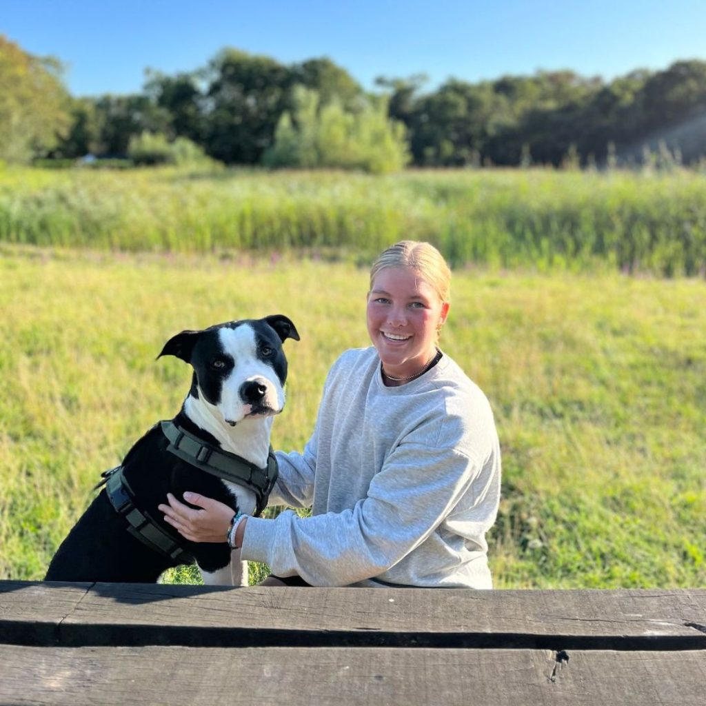 In 2023 heb ik Dex een stafford x bully xl van 10 maanden oud geadopteerd uit het asiel. Hij heeft helaas geen makkelijke start gehad in zijn leven. Hij is mega enthousiast en lief naar alle honden en mensen toe en wilt graag met iedereen spelen en knuffelen. Met Dex ben ik begonnen met de basisgehoorzaamheid cursus en vervolgens gehoorzaamheid 1 en gehoorzaamheid 2 ook hebben gevolgd. Dex heeft nu dus 3 diploma’s aan de wand. Wij zijn natuurlijk nog steeds samen hard aan het trainen. Alles trainen we op een positieve manier en met geduld, plezier en vertrouwen. Dex heeft al enorme stappen gemaakt en ik ben super trots op hem!